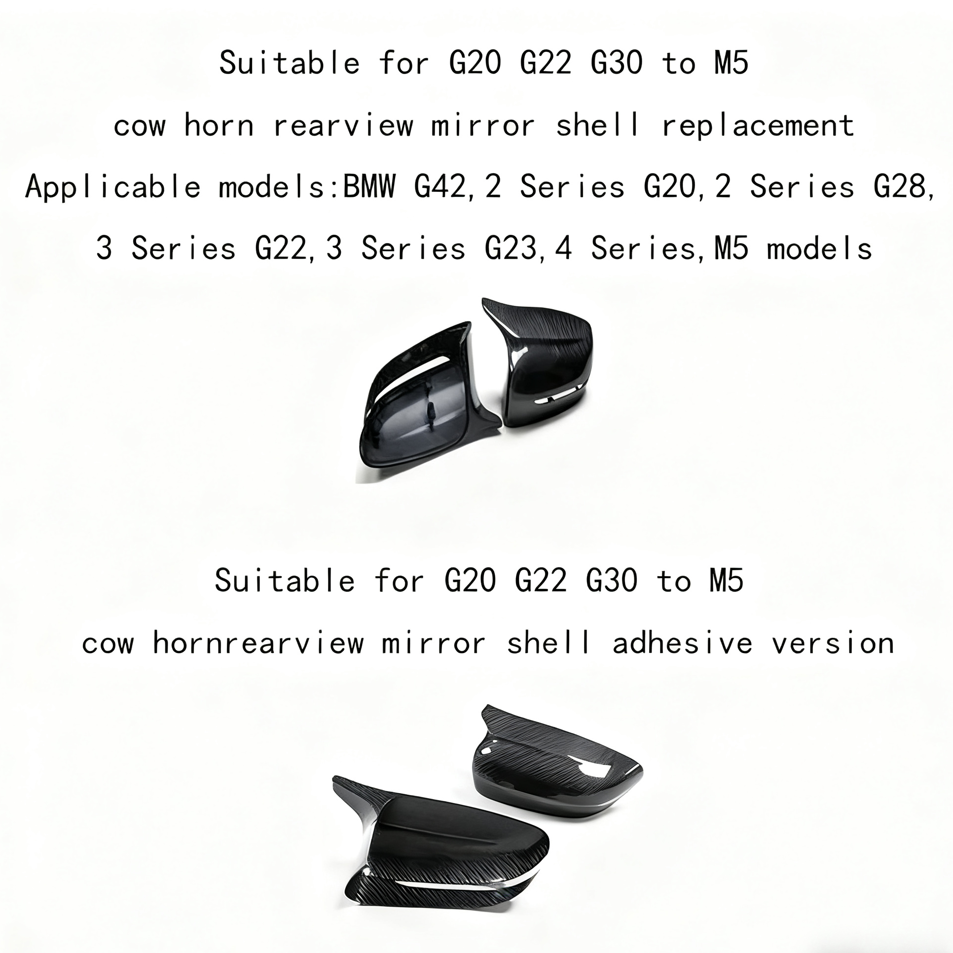 Suitable for G20 G22 G30 to M5 cow horn rearview mirror shell replacement. Applicable models:BMW G42,2 Series G20,2 Series G28,3 Series G22,3 Series G23,4 Series, M5 models